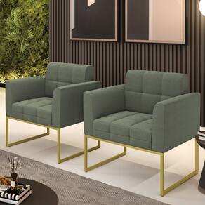 A Poltrona Elisa é uma poltrona que combina elegância, conforto e durabilidade. Ela tem um design retrô e sofisticado, com Base Industrial Dourado e revestimento em tecido Bouclê Menta, que harmonizam com qualquer ambiente. Ela é ideal para sala de estar, recepções, escritórios, cozinhas ou qualquer outro espaço que você queira decorar com estilo e bom gosto. Ela tem uma estrutura em madeira de reflorestamento eucalipto, que garante a resistência e a sustentabilidade do produto. Ela suporta até 120 kg de peso, podendo ser utilizada por pessoas de diferentes biotipos. Ela tem um acabamento reforçado e espuma de qualidade D23, que oferece maciez e aconchego. Ela contém detalhes de costura no encosto e assento, resultando em um acabamento impecável, conferindo muito mais valor e elegância ao produto. A Poltrona Elisa é um móvel de alta qualidade, beleza e funcionalidade. Ela é fácil de transportar, pois tem um peso leve e um tamanho compacto. A Poltrona Elisa é um produto que vai fazer a diferença na sua decoração e no seu bem-estar. Ela vai trazer charme, conforto e durabilidade para o seu ambiente. Aproveite essa oferta e leve para casa uma poltrona de qualidade por um preço incrível. Essa é a sua chance de ter uma poltrona maravilhosa por um preço imperdível. Corra e garanta seu Kit 2 Poltronas antes que acabe o estoque!