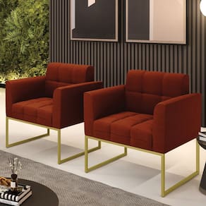 A Poltrona Elisa é uma poltrona que combina elegância, conforto e durabilidade. Ela tem um design retrô e sofisticado, com Base Industrial Dourado e revestimento em tecido Bouclê Terra, que harmonizam com qualquer ambiente. Ela é ideal para sala de estar, recepções, escritórios, cozinhas ou qualquer outro espaço que você queira decorar com estilo e bom gosto. Ela tem uma estrutura em madeira de reflorestamento eucalipto, que garante a resistência e a sustentabilidade do produto. Ela suporta até 120 kg de peso, podendo ser utilizada por pessoas de diferentes biotipos. Ela tem um acabamento reforçado e espuma de qualidade D23, que oferece maciez e aconchego. Ela contém detalhes de costura no encosto e assento, resultando em um acabamento impecável, conferindo muito mais valor e elegância ao produto. A Poltrona Elisa é um móvel de alta qualidade, beleza e funcionalidade. Ela é fácil de transportar, pois tem um peso leve e um tamanho compacto. A Poltrona Elisa é um produto que vai fazer a diferença na sua decoração e no seu bem-estar. Ela vai trazer charme, conforto e durabilidade para o seu ambiente. Aproveite essa oferta e leve para casa uma poltrona de qualidade por um preço incrível. Essa é a sua chance de ter uma poltrona maravilhosa por um preço imperdível. Corra e garanta seu Kit 2 Poltronas antes que acabe o estoque!