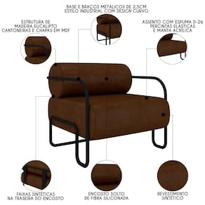 Para você que não abre mão do conforto aliado à beleza e sofisticação, a Poltrona Decorativa para Sala Industrial Kit 2 Kira Z08 Sintético Marrom Escuro, da Mpozenato, é a opção perfeita para compor a sua sala de estar.
