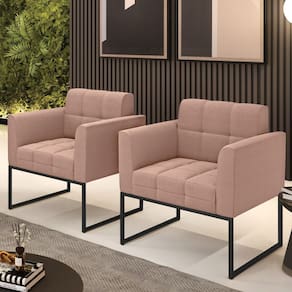 A Poltrona Elisa é uma poltrona que combina elegância, conforto e durabilidade. Ela tem um design retrô e sofisticado, com Base Industrial Preto e revestimento em tecido Bouclê Rosê, que harmonizam com qualquer ambiente. Ela é ideal para sala de estar, recepções, escritórios, cozinhas ou qualquer outro espaço que você queira decorar com estilo e bom gosto. Ela tem uma estrutura em madeira de reflorestamento eucalipto, que garante a resistência e a sustentabilidade do produto. Ela suporta até 120 kg de peso, podendo ser utilizada por pessoas de diferentes biotipos. Ela tem um acabamento reforçado e espuma de qualidade D23, que oferece maciez e aconchego. Ela contém detalhes de costura no encosto e assento, resultando em um acabamento impecável, conferindo muito mais valor e elegância ao produto. A Poltrona Elisa é um móvel de alta qualidade, beleza e funcionalidade. Ela é fácil de transportar, pois tem um peso leve e um tamanho compacto. A Poltrona Elisa é um produto que vai fazer a diferença na sua decoração e no seu bem-estar. Ela vai trazer charme, conforto e durabilidade para o seu ambiente. Aproveite essa oferta e leve para casa uma poltrona de qualidade por um preço incrível. Essa é a sua chance de ter uma poltrona maravilhosa por um preço imperdível. Corra e garanta seu Kit 2 Poltronas antes que acabe o estoque!