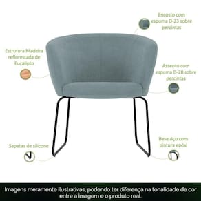 Poltrona Decorativa Isis Base Aço Preto Suede Camurça Verde Azulado - Nexta Casa Poltrona Isis Sofisticação, Conforto e Tecido Pet FriendlyO toque de elegância ideal para quem valoriza praticidade e bem-estar!Descrição do ProdutoVocê é daqueles que adoram um ambiente bem decorado com estilo e elegância? Então, a Poltrona Isis tem todos os atributos que você deseja! Com um design cuidadosamente elaborado, a Isis adiciona um toque de classe e sofisticação ao seu espaço seja na sala de estar, no quarto ou no home office. Para desenvolver nossas poltronas, utilizamos apenas materiais da mais alta qualidade: da estrutura resistente ao estofamento luxuoso, cada detalhe é escolhido para garantir durabilidade, resistência e longevidade.Além disso, o revestimento 100% Poliéster Pet Friendly facilita a limpeza e é perfeito para quem tem pets em casa.Adicione beleza e charme à sua casa com a Poltrona Isis!Características Técnicas Material da Estrutura: Madeira reflorestada de eucalipto tratada, com partes em MDF e OSB. Material do Assento: Espuma D-28 HR. Material do Encosto: Espuma D-23. Material dos Pés: Aço com pintura epóxi. Tipo de Pés: Fixa. Cor dos Pés: Preto. Revestimento: 100% Poliéster Pet Friendly (prático para limpeza, ideal para quem tem pets). Destaques: Design moderno com acabamento em costura rebatida. Peso Suportado: Até 100 kg. Medidas do Produto Altura Total: 75 cm Largura: 72 cm Profundidade: 67 cm Peso: 14 kg Outras Medidas Altura Livre do Encosto: 35 cm Altura do Assento ao Chão: 50 cm Largura do Assento: 41 cm Profundidade do Assento: 50 cm Espessura do Assento: 12 cm Altura dos Pés: 36 cm Diferenciais Design moderno que se adapta a diversos estilos de decoração. Estrutura robusta em madeira reflorestada mais resistência e compromisso sustentável. Revestimento em tecido 100% Poliéster Pet Friendly ideal para quem tem animais de estimação e precisa de praticidade na limpeza. Pés fixos em aço com pintura epóxi na cor preta detalhe de acabamento discreto e elegante. Acabamento em costura rebatida para reforçar a durabilidade e o charme. Quantidade de Volumes: 1. Necessita de Montagem: Não pronta para uso imediato! Instruções/Cuidados Utilizar um pano levemente umedecido com água, seguido de pano seco. Evitar exposição direta ao sol para manter a cor do tecido. Não usar escovas ou produtos abrasivos. Garantia 3 meses contra de fabricação. Observações Imagens meramente ilustrativas; a tonalidade pode variar conforme a configuração de tela. Objetos de decoração e eletros não acompanham o produto. Todos os produtos são enviados devidamente embalados para reduzir riscos de danos no . Verifique as condições da embalagem no ato da ; caso haja peças danificadas, informe no de . até a porta de entrada ou portaria do indicado. Confira as dimensões para garantir que o percurso e o de instalação permitam a passagem e acomodação do produto. Não nos responsabilizamos, no ato da , por montagem, desmontagem, instalação ou por escadas/elevadores/guinchos. Marca: Não Informado