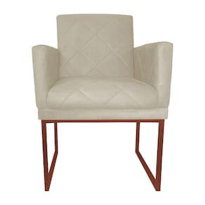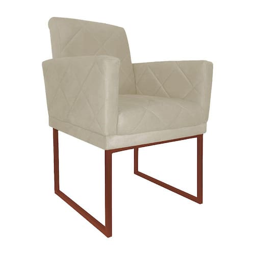 Poltrona Decorativa Klara Suede Marfim Base Industrial Cobre - Vallisa Decor - Off White