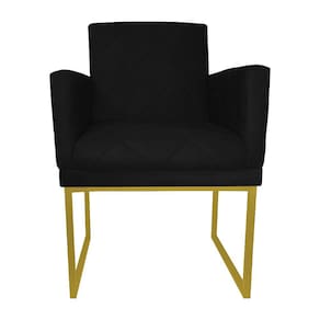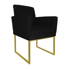 Poltrona Decorativa Klara Suede Preto Base Industrial Dourada - Vallisa Decor