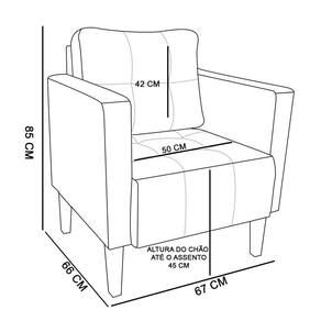 Junção de conforto e design moderno, é uma ótima escolha para sua casa, recepção ou em qualquer outro ambiente. Possui preenchimento em espuma de excelente qualidade, densidade D26 no acento e nos braços, no encosto fibra siliconada e revestimento em couríssimo. Estrutura em madeira reflorestada e percintas elásticas, que garantem durabilidade e alta resistência.