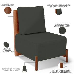 Poltrona Decorativa Sala De Estar Living Hungria L02 Couríssimo Camel Linho Verde Musgo - Lyam