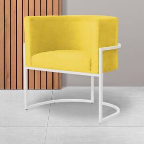 Poltrona Decorativa Luana Suede Amarelo Base Branca Ms Decor