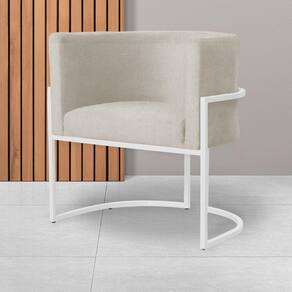 Poltrona Decorativa Luana Suede Bege Base Branca Mz Decor