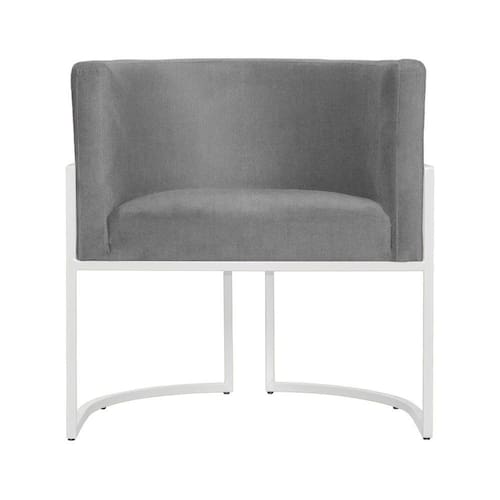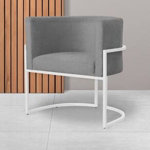 Poltrona Decorativa Luana Suede Cinza Base Branca Mz Decor
