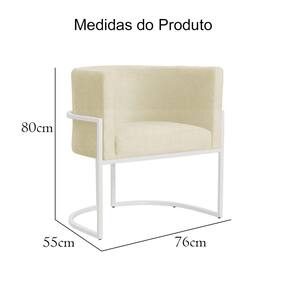 Poltrona Decorativa Luana Suede Marfim Base Branca Mz Decor - Bege Claro