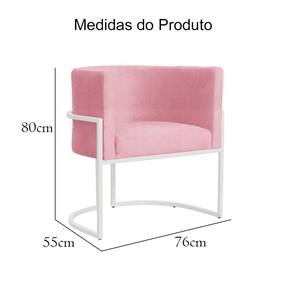 Poltrona Decorativa Luana Suede Rosa Base Branca Mz Decor