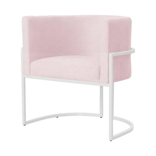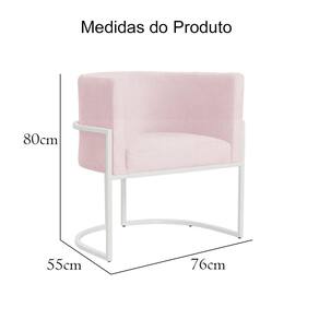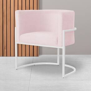 Poltrona Decorativa Luana Suede Rosa Bebê Base Branca Ms Decor