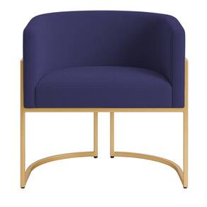 Revestida em tecido veludo, proporciona toque macio e brilho sofisticado, realçando sua presença em qualquer ambiente. Os pés metálicos com pintura dourada complementam a elegância da peça, adicionando um detalhe refinado à sua base.
