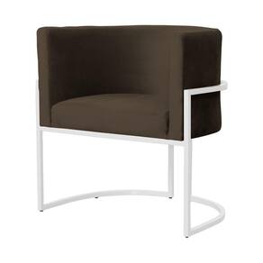 Poltrona Decorativa Luana Veludo Marrom Base Branca Ms Decor