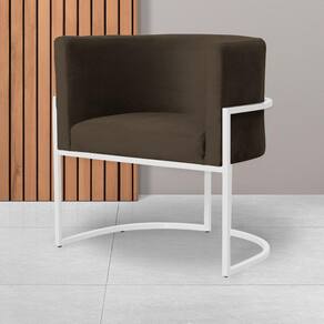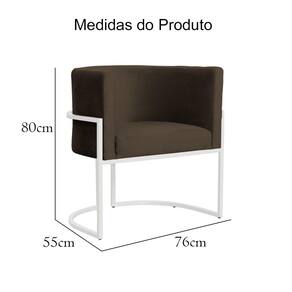 Poltrona Decorativa Luana Veludo Marrom Base Branca Mz Decor