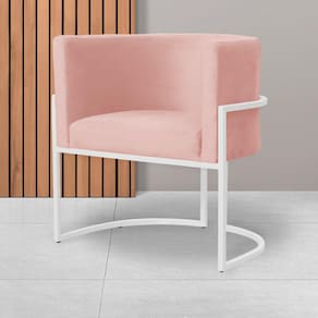 Poltrona Decorativa Luana Veludo Rosa Base Branca Mz Decor