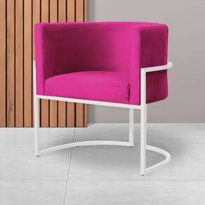 Poltrona Decorativa Luana Veludo Rosa Pink Base Branca Ms Decor