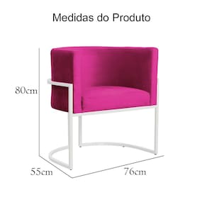 Poltrona Decorativa Luana Veludo Rosa Pink Base Branca Mz Decor