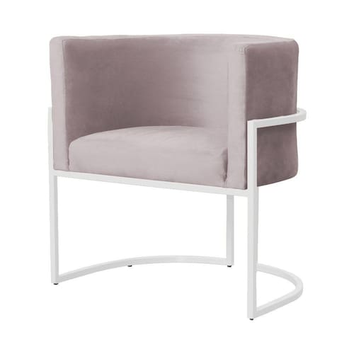 Poltrona Decorativa Luana Veludo Rosê Base Branca Ms Decor