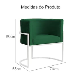 Poltrona Decorativa Luana Veludo Verde Base Branca Ms Decor