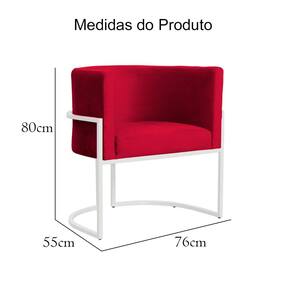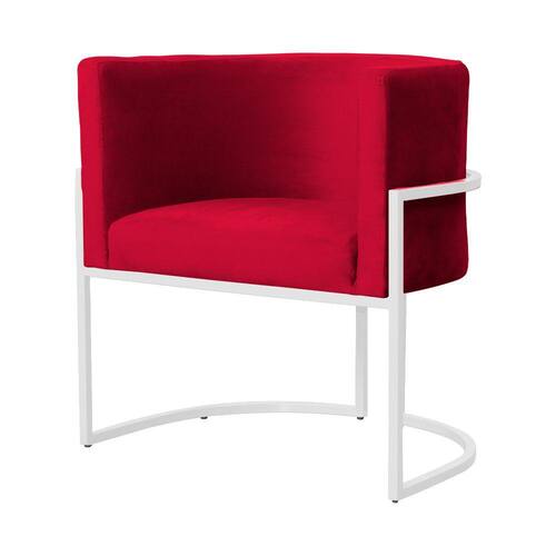 Poltrona Decorativa Luana Veludo Vermelho Base Branca Ms Decor