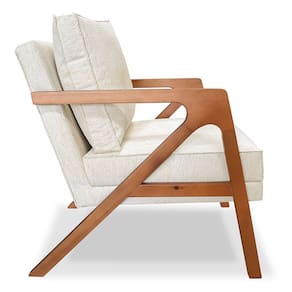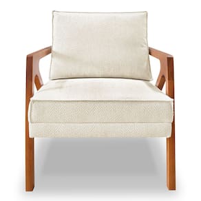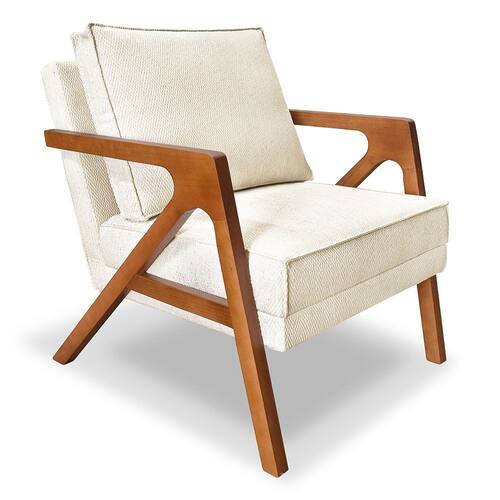 Poltrona Decorativa Luiza Linho Bouclê Base em Madeira Castanho - Pallazio - Bege