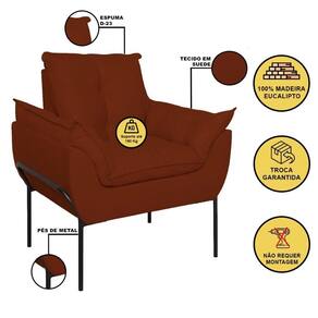É Reclinável: Não | Desenho Do Tecido: Liso | Acessórios Incluídos: Não | É Sofá-Cama: Não | Estilo: Moderno | Cor Dos Pés: Preto | Linha: Premium | Material do estofamento: Suede | Unidades Por Kit: 1 | Densidade Da Espuma Do Assento: D-23 | Material De Enchimento Do Encosto: Espuma | Requer Montagem: Não | Altura: 86,5 cm | Marca: Balaqui Decor | Tipo de Garantia: Garantia do Fabricante | Coleção de Antiguidade: Não | Móvel Dobrável: Não | Dimensão (A x L x C): 86,5 x 80 x 61 | Estofado: Suede | de Assentos: 1 | Duração da Garantia: 3 meses | Largura: 80 cm | País de Origem: | Profundidade: 61 cm | Peso do Item (itemWeight): 15 kg | Tipo de produto: Poltrona | Material: Madeira | Fabricante: Balaqui Estofados | Modelo: Poltrona Opala com Pés de Metal | Quantidade de Peças: 1 | Quantidade de caixas de embalagem: 1 | Peso suportado: 180 kg | Material dos pés: Metal | Materiais da estrutura: Madeira | É modular: Não | É Em forma de U: Não | É de canto: Não | É com chaise: Não | Quantidade de Lugares: 1 | Revestimento: Suede | Montagem: Montagem Completa Cor: Terracota