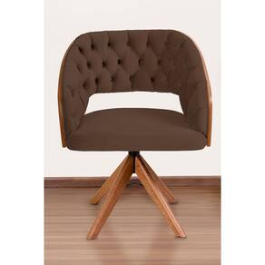 Poltrona Decorativa Mari Laminada Pé Giratório de Madeira Capitonê - Marrom