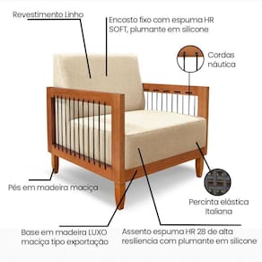 A poltrona é fabricada com uma estrutura robusta, garantindo segurança e estabilidade. O revestimento em linho confere um toque de elegância e refinamento à peça, além de ser durável e fácil de limpar. O estofamento macio e confortável oferece um relaxamento único, permitindo que você se desconecte do mundo exterior e desfrute de momentos de descanso e tranquilidade.
