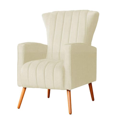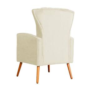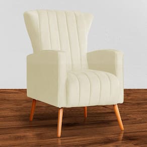 Poltrona Decorativa Melinda Suede Marfim Pés Madeira Ms Decor - Bege Claro