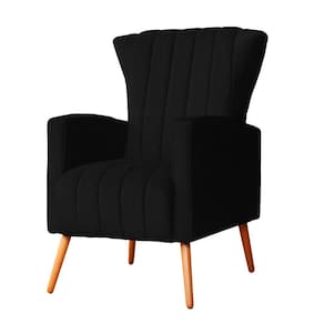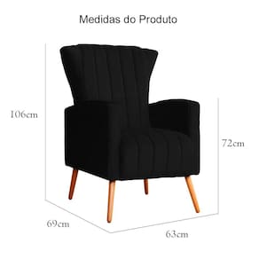 Poltrona Decorativa Melinda Suede Preto Pés Madeira Ms Decor