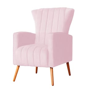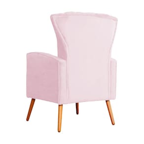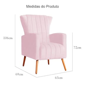 Poltrona Decorativa Melinda Suede Rosa Bebê Pés Madeira Ms Decor