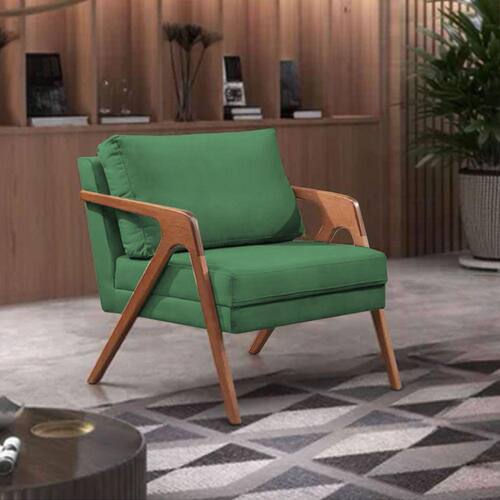 Poltrona Decorativa Mona Premium Base Madeira Maciça Linho Verde