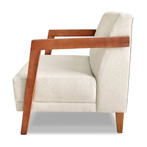 Poltrona Decorativa Natália Linho Base em Madeira Castanho - Pallazio - Bege