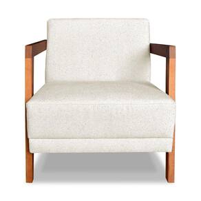 Poltrona Decorativa Natália Linho Base em Madeira Castanho - Pallazio - Bege Claro