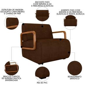 Deixe-se envolver pelo conforto e estilo da Poltrona Decorativa Orgânica para Sala Belarus K04 Sintético Marrom Escuro, da Mpozenato.