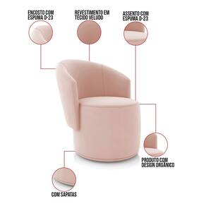 A Poltrona Malu é uma peça que combina segurança, conforto e durabilidade. Ela tem um design orgânico que remete às formas encontradas na natureza oferecendo uma sensação de calma e equilíbrio criando um espaço acolhedor e relaxante. Além da sua simetria artística e curvas suaves, ela contém um revestimento em Veludo que harmoniza com qualquer ambiente. Pode ser utilizada em sala de estar, recepções, escritórios, lojas, espaços comerciais, ou qualquer outro espaço que você queira decorar com estilo e bom gosto. Ela tem uma estrutura em madeira de reflorestamento eucalipto, que garante a resistência e a sustentabilidade do produto. Ela suporta até 120 kg de peso, podendo ser utilizada por pessoas de diferentes biotipos. Ela tem um acabamento reforçado e espuma de qualidade D23, que oferece maciez e aconchego. Ela contém encosto arredondados e um assento cilíndrico resultando em um acabamento impecável conferindo muito mais valor e elegância ao produto. As sapatas plásticas (fixa) são pequenas proteções colocadas na base dos pés para evitar que eles risquem ou danifiquem o chão. A Poltrona Malu é um móvel de alta qualidade, que exala sofisticação e conforto. Ela é fácil de transportar, pois tem um peso leve e um tamanho compacto. Ela vai trazer charme, conforto incomparável e durabilidade para o seu ambiente. Corra e garanta sua Poltrona agora mesmo!