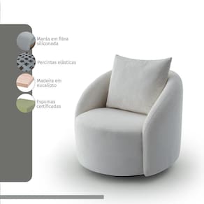Poltrona Decorativa Orgânica Giratória Boucle Cali Estofama - Branco