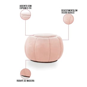 A Poltrona Giratória com Puff Cloud é um kit que combina formas artísticas, conforto e durabilidade. Ele tem um design orgânico que remete às formas encontradas na natureza como as nuvens criando um espaço acolhedor e relaxante. Além da sua simetria e curvas suaves, a poltrona contém uma Base Giratória e o puff possui sapatas plásticas(Fixa), ambos com revestimento em tecido Bouclê que cria uma conexão entre a peça e o ambiente. Pode ser utilizado em sala de estar, recepções, escritórios, lojas e espaços comerciais, ou qualquer outro espaço que você queira decorar com estilo e bom gosto. Ele tem uma estrutura em madeira de reflorestamento eucalipto, que garante a resistência e a sustentabilidade do produto. Ele suporta até 120 kg de peso, podendo ser utilizada por pessoas de diferentes biotipos. Inclui almofada solta com enchimento de fibra siliconada, oferecendo versatilidade para diferentes usos e necessidades. Ele tem um acabamento reforçado e espuma de qualidade D24, que oferece maciez e aconchego. Ele apresenta detalhes de costura refinados em formato arredondado resultando em um acabamento impecável conferindo muito mais valor e elegância ao produto. Ele é fácil de transportar, pois tem um peso leve e um tamanho compacto. A Poltrona Giratória com Puff Cloud é um conjunto que vai fazer a diferença na sua decoração e no seu bem-estar. Garanta já a sua!