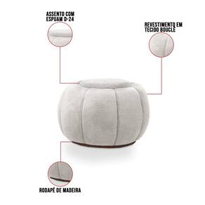 A Poltrona Giratória com Puff Cloud é um kit que combina formas artísticas, conforto e durabilidade. Ele tem um design orgânico que remete às formas encontradas na natureza como as nuvens criando um espaço acolhedor e relaxante. Além da sua simetria e curvas suaves, a poltrona contém uma Base Giratória e o puff possui sapatas plásticas(Fixa), ambos com revestimento em tecido Bouclê que cria uma conexão entre a peça e o ambiente. Pode ser utilizado em sala de estar, recepções, escritórios, lojas e espaços comerciais, ou qualquer outro espaço que você queira decorar com estilo e bom gosto. Ele tem uma estrutura em madeira de reflorestamento eucalipto, que garante a resistência e a sustentabilidade do produto. Ele suporta até 120 kg de peso, podendo ser utilizada por pessoas de diferentes biotipos. Inclui almofada solta com enchimento de fibra siliconada, oferecendo versatilidade para diferentes usos e necessidades. Ele tem um acabamento reforçado e espuma de qualidade D24, que oferece maciez e aconchego. Ele apresenta detalhes de costura refinados em formato arredondado resultando em um acabamento impecável conferindo muito mais valor e elegância ao produto. Ele é fácil de transportar, pois tem um peso leve e um tamanho compacto. A Poltrona Giratória com Puff Cloud é um conjunto que vai fazer a diferença na sua decoração e no seu bem-estar. Garanta já a sua!