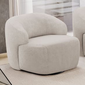 Características: Estrutura em madeira de eucalipto tratada e aparelhada com reforços, cantoneiras e chapas em MDF. Revestimento em Bouclê de alta qualidade na cor Bege. Encosto curvo fixo composto por espuma soft. Assento curvo fixo composto por espuma D-26 e molas espirais. Percintas elásticas no assento para maior resistência e durabilidade. Braços compostos por espuma D-20. Pés em aço giratório. Peso suportado: Até 120 kg.