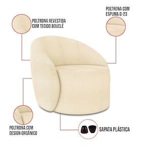 A Poltrona Lua é uma peça que combina segurança, conforto e durabilidade. Ela tem um design orgânico que remete às formas encontradas na natureza como ondas, folhas ou conchas que além de se moldar ao corpo humano, evoca uma sensação de calma e equilíbrio criando um espaço acolhedor e relaxante. Além da sua simetria artística e curvas suaves, ela contém um revestimento em tecido Bouclê Bege, que cria uma conexão entre a peça e o ambiente. Ela é ideal para quem busca móveis que não só sejam bonitos, mas que também proporcionem conforto e bem-estar. Pode ser utilizada em sala de estar, recepções, escritórios, lojas e espaços comerciais, ou qualquer outro espaço que você queira decorar com estilo e bom gosto. Ela tem uma estrutura em madeira de reflorestamento eucalipto, que garante a resistência e a sustentabilidade do produto. Ela suporta até 120 kg de peso, podendo ser utilizada por pessoas de diferentes biotipos. Ela tem um acabamento reforçado e espuma de qualidade D23, que oferece maciez e aconchego. Ela contém detalhes de costura no encosto e um assento cilíndrico arredondado resultando em um acabamento impecável conferindo muito mais valor e elegância ao produto, oferecendo maior liberdade de movimento ao cliente. As sapatas plásticas são pequenas proteções colocadas na base dos pés do sofá para evitar que eles risquem ou danifiquem o chão. A Poltrona Lua é um móvel de alta qualidade, que exala sofisticação e conforto. Ela é fácil de transportar, pois tem um peso leve e um tamanho compacto. Ela vai trazer charme, Conforto incomparável e durabilidade para o seu ambiente. Corra e garanta a sua agora mesmo!