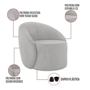 A Poltrona Lua é uma peça que combina , conforto e durabilidade. Ela tem um design orgânico que remete às formas encontradas na natureza como ondas, folhas ou conchas que além de se moldar ao corpo humano, evoca uma sensação de calma e equilíbrio criando um espaço acolhedor e relaxante. Além da sua simetria artística e curvas suaves, ela contém um revestimento em tecido Suede Cinza, que cria uma conexão entre a peça e o ambiente. Ela é ideal para quem busca móveis que não só sejam bonitos, mas que também proporcionem conforto e bem-estar. Pode ser utilizada em sala de estar, recepções, escritórios, lojas e espaços comerciais, ou qualquer outro espaço que você queira decorar com estilo e bom gosto. Ela tem uma estrutura em madeira de reflorestamento eucalipto, que garante a resistência e a sustentabilidade do produto. Ela suporta até 120 kg de peso, podendo ser utilizada por pessoas de diferentes biotipos. Ela tem um acabamento reforçado e espuma de qualidade D23, que oferece maciez e aconchego. Ela contém detalhes de costura no encosto e um assento cilíndrico arredondado resultando em um acabamento impecável conferindo muito mais valor e elegância ao produto, oferecendo maior liberdade de movimento ao cliente. As sapatas plásticas são pequenas proteções colocadas na base dos pés do sofá para evitar que eles risquem ou danifiquem o chão. A Poltrona Lua é um móvel de alta qualidade, que exala sofisticação e conforto. Ela é fácil de transportar, pois tem um peso leve e um tamanho compacto. Ela vai trazer charme, Conforto incomparável e durabilidade para o seu ambiente. Corra e garanta a sua agora mesmo!OBSERVAÇÃO IMPORTANTE: A é realizada no informado, não realizamos o para andares superiores, como subir escadas, elevadores ou guinchos. Não realizamos montagens, desmontagens ou instalações. Todos esses serviços são de responsabilidade do comprador. Dimensões do Produto: Altura Total: 85 cm Largura Total: 91 cm Profundidade Total: 93 cm Altura do Encosto: 42 cm Largura do Assento: 62 cm Profundidade do Assento: 63 cm Altura do Assento: 40 cm Altura do chão ao Assento: 45 cm Largura do encosto: 87 cm Altura dos Pés: 5 cm Peso: 30 kg Especificações do Produto: Estrutura: Madeira Eucalipto Reflorestada Material do Estofamento: D-23, Manta Acrílica/Cintas Elásticas Revestimento: Suede Peso Suportado: Até 120 Kg Quantidade de Assento: 1 Assento. Quantidade de Lugares: 1 Lugar. Tipo de Pés: Sapatas Plásticas Tipo de Encosto: Fixo Tipo de Assento: Fixo Diferenciais: Design orgâ de alta qualidade. Necessita de Montagem: Não Garantia: 90 dias contra de fabricação Instruções de Limpeza: Utilizar um pano limpo e levemente úmido Você irá Receber: 01 Poltrona - Entregue em: 01 Volume