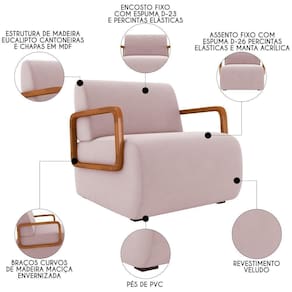Deixe-se envolver pelo conforto e estilo da Poltrona Decorativa Orgânica para Sala Belarus K04 Veludo Rosê, da Mpozenato.