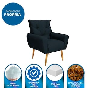 Produto: Poltrona Denver | Conteúdo da Embalagem: Poltrona Denver | Nome do Simples no Fornecedor: Poltrona Decorativa para Sala de Estar Quarto e Escritório Denver Veludo Chumbo | Altura do Produto (cm): 98 | Largura do Produto (cm): 78 | Comprimento do Produto (cm): 78 | Altura do Produto com embalagem (cm): 74 | Largura do Produto com embalagem (cm): 83 | Comprimento do Produto com embalagem (cm): 84 | Descrição do Tamanho: 98 X 78 X 78 cm | Peso do Produto com embalagem (Kg): 26 | Peso do Produto (Kg): 24 | Material da Estrutura: Madeira Maciça | Material para Filtro: Madeira | Instruções/Cuidados: Não deixe o móvel exposto ao sol. Evite contato com líquidos. | Estado de Origem: PR | Garantia do Fabricante: 3 meses contra defeitos de fabricação. Não cobrimos alterações e/ou montagem errada. | Garantia em Meses: 3 | Fabricado Por: Matrix | Vendido Por: Zanin Shop | Cômodo Indicado: Sala de Estar | Possui Pés: Sim | Volumes: 1 | Medidas do Encosto: 50 X 60 X 20 cm | Medida do Assento: 50 X 48 X 52 cm | Medidas Braças: 37 X 15 X 70 cm | Peso Suportado: 100 Kg | Revestimento: Tecido Veludo | Material dos Pés: Madeira Maciça | Material do Enchimento Assento/Braças: Espuma | Tipo de produto: Poltrona | Largura Produto Com Embalagem (cm): 83 Cor: Preto
