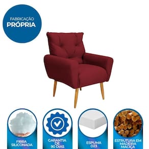 Produto: Poltrona Denver | Conteúdo da Embalagem: Poltrona Denver | Nome do Simples no Fornecedor: Poltrona Decorativa para Sala de Estar Quarto e Escritório Denver Veludo Chumbo | Altura do Produto (cm): 98 | Largura do Produto (cm): 78 | Comprimento do Produto (cm): 78 | Altura do Produto com embalagem (cm): 74 | Largura do Produto com embalagem (cm): 83 | Comprimento do Produto com embalagem (cm): 84 | Descrição do Tamanho: 98 X 78 X 78 cm | Peso do Produto com embalagem (Kg): 26 | Peso do Produto (Kg): 24 | Material da Estrutura: Madeira Maciça | Material para Filtro: Madeira | Instruções/Cuidados: Não deixe o móvel exposto ao sol. Evite contato com líquidos. | Estado de Origem: PR | Garantia do Fabricante: 3 meses contra defeitos de fabricação. Não cobrimos alterações e/ou montagem errada. | Garantia em Meses: 3 | Fabricado Por: Matrix | Vendido Por: Zanin Shop | Cômodo Indicado: Sala de Estar | Possui Pés: Sim | Volumes: 1 | Medidas do Encosto: 50 X 60 X 20 cm | Medida do Assento: 50 X 48 X 52 cm | Medidas Braças: 37 X 15 X 70 cm | Peso Suportado: 100 Kg | Revestimento: Tecido Veludo | Material dos Pés: Madeira Maciça | Material do Enchimento Assento/Braças: Espuma | Tipo de produto: Poltrona | Largura Produto Com Embalagem (cm): 83 Cor: Vinho