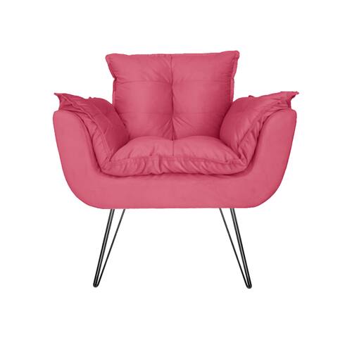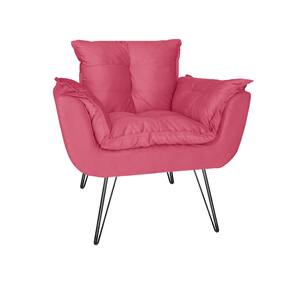 Poltrona Decorativa Para Recepção Com Pés de Ferro Opala Suede Rosa Barbie - LM DECOR