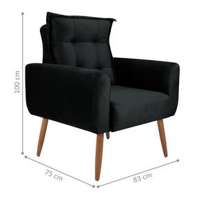 Requer montagem: Sim | Inclui manual de montagem: Sim | Quantidade de caixas de embalagem: 1 | Comprimento: 75 | Profundidade: 75 | Altura: 100 | Largura: 83 | NOME DO PRODUTO NO FORNECEDOR: Poltrona Decorativa | CONTEÚDO DA EMBALAGEM: 1 Poltrona | COM ENCOSTO RECLINÁVEL: Não | É GIRATÓRIA: Não | MATERIAL PARA FILTRO: Veludo | PRODUTO: Poltrona | TIPO DE CADEIRA: Poltrona | LARGURA PRODUTO COM EMBALAGEM (CM): 88 | PESO PRODUTO COM EMBALAGEM (KG): 26 | CÔMODO INDICADO: Sala | COM ALTURA AJUSTÁVEL: Não | COM RODAS: Não | CORES DO PRODUTO (FILTRO DE CORES): Preto | COMPRIMENTO PRODUTO COM EMBALAGEM (CM): 77 | ESTADO DE ORIGEM: PR | PRODUTO PRECISA DE MONTAGEM?: Sugerimos a contratação de um montador para a montagem do produto. Não nos responsabilizamos por causadas no ato da montagem. | COR PREDOMINANTE: Preto | ALTURA DO PRODUTO COM EMBALAGEM (CM): 80 | INSTRUÇÕES/CUIDADOS: Limpar com pano macio e seco, não utilizar produtos abrasivos | ALTURA DO PRODUTO (CM): 100 | COM APOIO DE BRAÇOS: Sim | LARGURA DO PRODUTO (CM): 83 | COMPRIMENTO DO PRODUTO (CM): 75 | QUANTIDADES DE CAIXAS DE EMBALAGEM: 1 | PESO MÁXIMO SUPORTADO: 110 | PESO DO PRODUTO (KG): 25 | MATERIAL PRINCIPAL: Veludo | DESCRIÇÃO DO TAMANHO: 100x83x75 cm