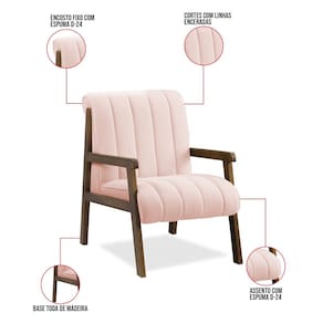 A Poltrona Daline é uma excelente escolha para quem busca uma peça com design robusto, elegante e confortável. Seu estilo inovador transforma qualquer ambiente em um visual único e marcante oferecendo um espaço acolhedor e relaxante. A poltrona possui base de madeira maciça e presenta um acabamento gomado no assento e no encosto com detalhes de cortes e linhas enceradas que além de garantir durabilidade e resistência realça todo o charme da peça. Possui braços com aberturas vazadas, oferecendo um design leve, combinado com o revestimento em tecido Bouclê Rosê, que cria uma conexão entre a peça e o ambiente. Pode ser utilizada em sala de estar, recepções, escritórios, lojas e espaços comerciais, ou qualquer outro espaço que você queira decorar com estilo e bom gosto. Ela tem uma estrutura em madeira de reflorestamento eucalipto, que garante a resistência e a sustentabilidade do produto. Ela suporta até 120 kg de peso, podendo ser utilizada por pessoas de diferentes biotipos. Ela tem um acabamento reforçado e espuma de qualidade D24, que oferece maciez e aconchego. Ela é fácil de transportar, pois tem um peso leve e um tamanho compacto. A Poltrona Daline é um produto que vai fazer a diferença na sua decoração e no seu bem-estar. Garanta já a sua!