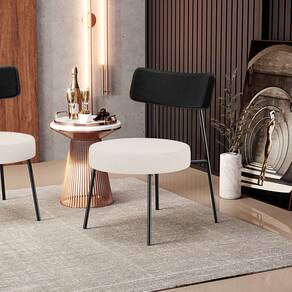 Poltrona Decorativa Para Sala De Estar Base Fixa Londres L02 Couríssimo Preto Linho Bege - Lyam