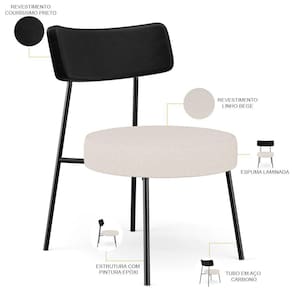 Revestimento encosto em Couríssimo na cor Preto e assento revestido em Linho na cor Bege.